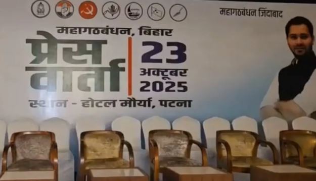 पोस्टर में केवल तेजस्वी यादव की तस्वीर नजर आ रही है। कांग्रेस के वरिष्ठ नेता अशोक गहलोत RJD और कांग्रेस के बीच सीट-बंटवारे की बातचीत में मतभेद सुलझाने के लिए पटना पहुंचे थे। वह इस प्रेस कॉन्फ्रेंस में तेजस्वी के साथ मौजूद रह सकते हैं। लंबी खींचतान के बाद महागठबंधन के सहयोगी दल आज इस प्रेस कॉन्फ्रेंस में एकता का संदेश देना चाहते हैं।