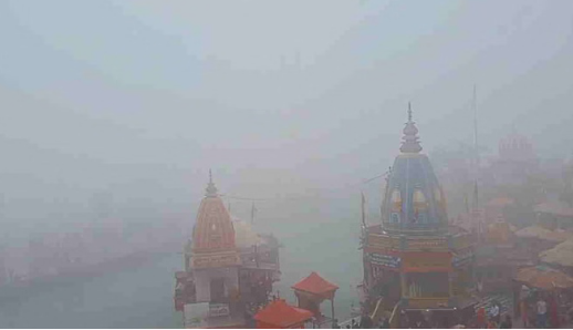 धर्मनगरी कोहरे की चादर से ढकी