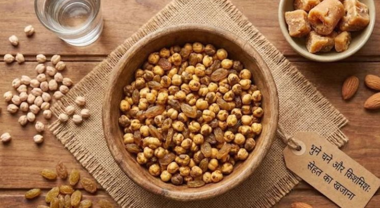 भुने चने और किशमिश का सेवन करना एक सरल, स्वादिष्ट और पौष्टिक आदत है, जो स्वास्थ्य को संपूर्ण रूप से सुधार सकती है। इन्हें सुबह खाली पेट या स्नैक के रूप में शामिल करें।