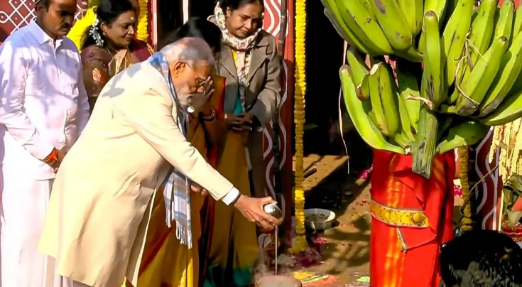 पीएम मोदी ने इस त्योहार के मौके पर तमिल रीति-रिवाजों से पूजा की। इसके बाद गाय और गाय के बछड़े को चारा खिलाया और उनकी भी माला पहनाकर पूजा की।