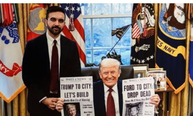 न्यूयॉर्क शहर के मेयर जोहरान ममदानी ने गुरुवार को व्हाइट हाउस की यात्रा के दौरान राष्ट्रपति डोनाल्ड ट्रंप से मुलाकात की। इस दौरान उन्होंने ट्रंप को एक नकली अखबार का मुखपृष्ठ भेंट किया, ताकि शहर में बड़े पैमाने पर नए आवास निवेश पर चर्चा की जा सके।